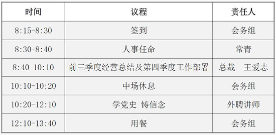 2021 年終將至,為進(jìn)一步明確第四季度重點(diǎn)工作及要求, 全力沖刺年度目標(biāo),特召開(kāi)此次會(huì)議。具體事宜通知如下: