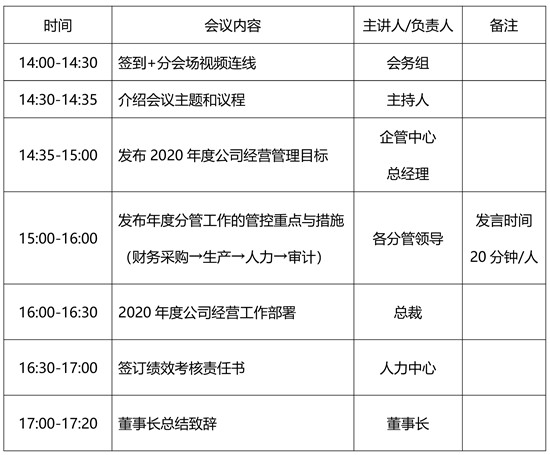2) 所有與會人員不得請假,若有因工作特殊安排不能參會的,需向總裁請假,獲準后及時通知人力資源中心;