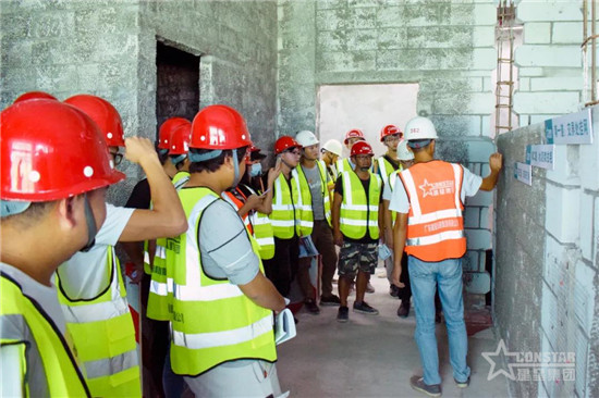 隨后,現(xiàn)場講解員帶領(lǐng)學(xué)員現(xiàn)場觀摩,著重介紹了項目施工過程的整體管理模式、特色亮點環(huán)節(jié)和各個施工環(huán)節(jié)的細節(jié)處理方式。