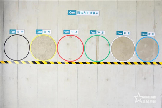 采用紅外激光對灰餅、筋條施工,保證滿足室內(nèi)的開間進深、面層垂直平整在4個毫以內(nèi)。薄層抹灰工效非???、工期短,損耗少,空鼓、開裂控制效果好,且杜絕了泥水的濕作業(yè),為后續(xù)工藝的穿插提供了必要條件。