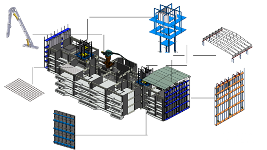 一種全新施工體系,由核心筒自升爬模組成的大模板體系、成品鋼筋網(wǎng)片機械安裝體系、自動伸縮遮陽雨棚系統(tǒng)共同組成的智能建造體系。該體系應(yīng)用于施工現(xiàn)場,安裝于樓層作業(yè)面。優(yōu)勢是提高勞動效率、降低成本、加快施工周期,提高施工質(zhì)量,同時施工安全性得到保障。通過各裝置之間聯(lián)動工作,使得工地數(shù)字化、在線化、智能化,項目實施與企業(yè)管理達(dá)到良好的組合效果。