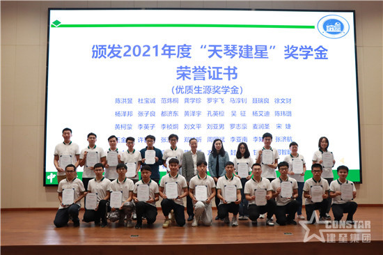 隨后蔡光董事長(zhǎng)、黃瑞敏秘書(shū)長(zhǎng)、郝雅娟書(shū)記、常青副總裁、梅健偉教授、楊山清教授分別為獲得“天琴建星獎(jiǎng)學(xué)金”的學(xué)生頒獎(jiǎng)。