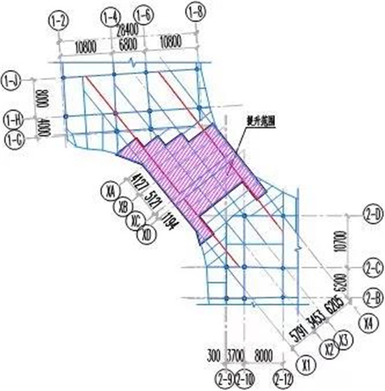 連廊原設(shè)計(jì)為懸挑構(gòu)件,為實(shí)現(xiàn)整體提升,需將原懸挑結(jié)構(gòu)之間用臨時(shí)桿件連接,以形成整體提升單元。但這樣就改變了原本的受力特點(diǎn),容易產(chǎn)生未知變形和位移,造成原依附在結(jié)構(gòu)上的幕墻結(jié)構(gòu)變形破壞,甚至導(dǎo)致提升到位后因變形過(guò)大而無(wú)法與結(jié)構(gòu)連接。