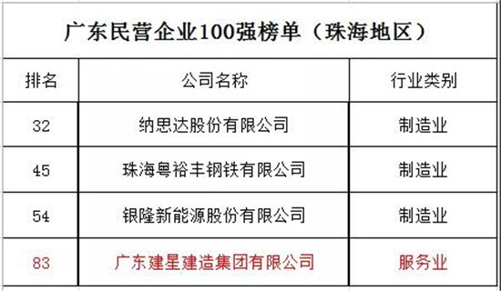 8月29日,2019廣東企業(yè)500強(qiáng)發(fā)布大會(huì)在廣州白云國際會(huì)議中心舉行。大會(huì)發(fā)布了廣東企業(yè)500強(qiáng),廣東省民營企業(yè)100強(qiáng)等榜單。廣東建星建造集團(tuán)有限公司榮登榜單,成為珠海12家上榜企業(yè)之一,也是唯一一家建筑企業(yè),連續(xù)兩年躋身廣東企業(yè)500強(qiáng)、民營企業(yè)100強(qiáng)。