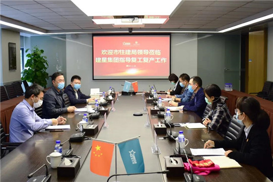 ▲2月26日,市住建局局長(zhǎng)方小勇帶隊(duì)走訪建星集團(tuán),重點(diǎn)了解公司疫情防控和復(fù)產(chǎn)復(fù)工情況。要求全力做好應(yīng)急預(yù)案、落實(shí)各項(xiàng)防控舉措,保證防疫物資充足、保障員工生命安全和身體健康。