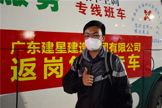 “在家里待了一個多月,好想回來上班,一直買不到票我都著急死了。沒想到建星不僅安排免費(fèi)的專車把我們安全送到,一路上還有小伙伴幫我們搬行李、送食物,真的好感動!給你們點(diǎn)贊!”