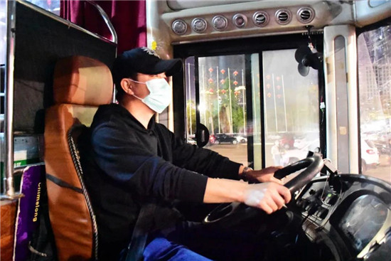 “剛開始接到接車任務(wù),其實(shí)家人還是蠻擔(dān)心我的。不過專車的防疫措施做得很好,做過全面消毒,原本可以坐50多人的大巴,因?yàn)橐3忠欢ň嚯x,按規(guī)定一排只能坐一個人,所以只坐了一半的人數(shù)。雖然不遠(yuǎn)千里一趟接人數(shù)不多,但為了大家安全,我們覺得也值得!這一趟來回3600公里,整整奔波了3天3夜,今晚終于可以好好睡覺了,不容易,哈哈……”