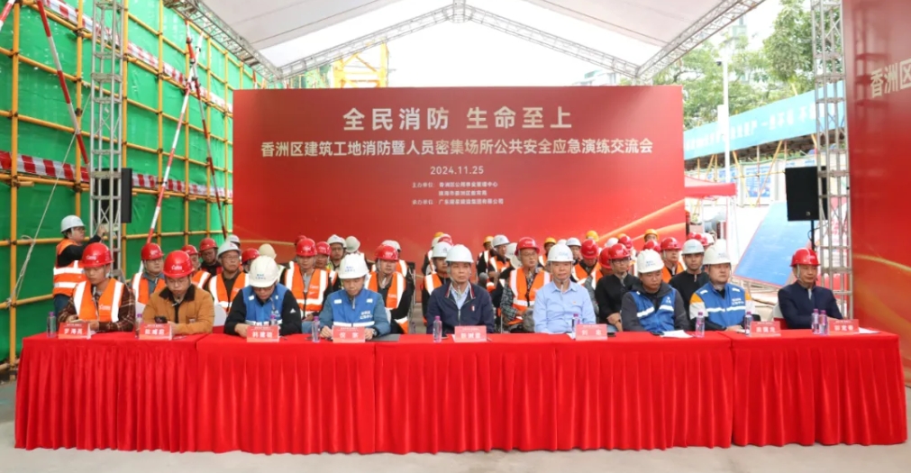 香洲區(qū)建筑工地消防暨人員密集場所公共安全應(yīng)急演練交流會在我司項(xiàng)目順利召開