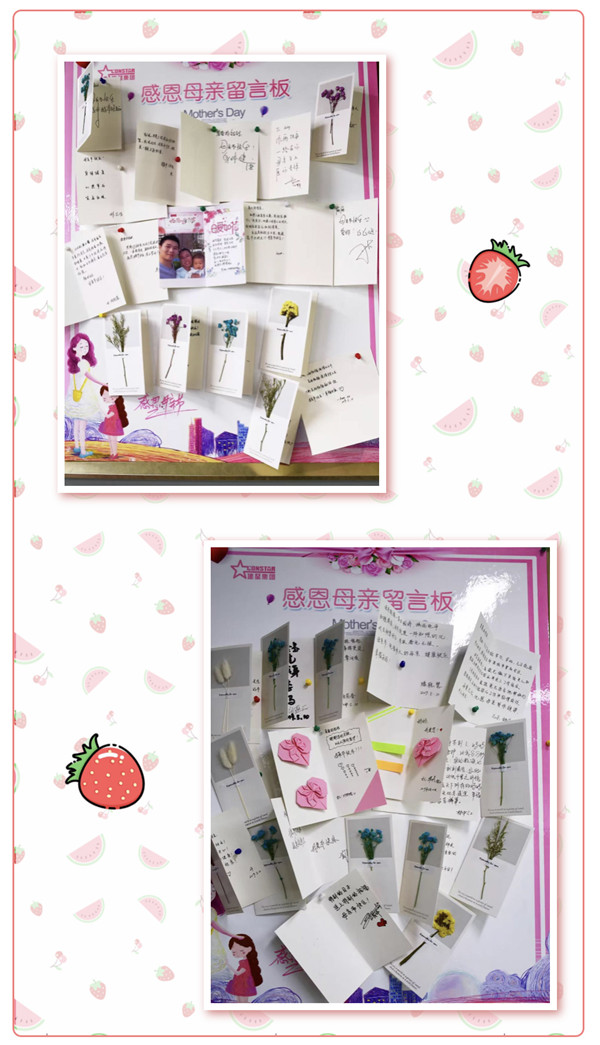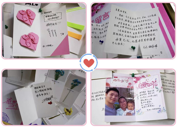 收到心意小卡片的小伙伴們也精心寫著祝福語,并將充滿愛意的賀卡展示在總部集團(tuán)二樓員工活動室中的母親節(jié)留言墻上,成為一道靚麗的風(fēng)景線。